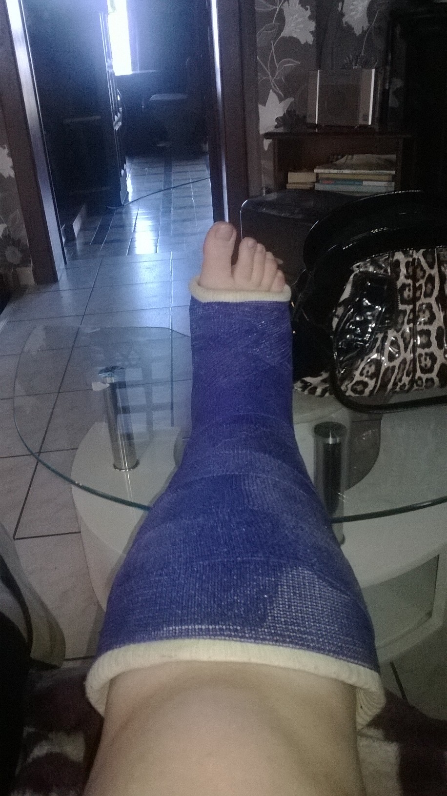 Je suis tombée et je me suis faite une belle entorse alors je suis platrée :snif: ,